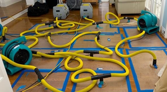 Consider drying affected contents in the area of the moisture intrusion in conjunction with drying the affected structure. This helps minimize cost and inconvenience for occupants. However, if the amount and type of damage to the structure prevents drying contents in the area of the moisture intrusion, or if contents require special handling, specialized drying chambers can be created to process the contents outside the affected area.